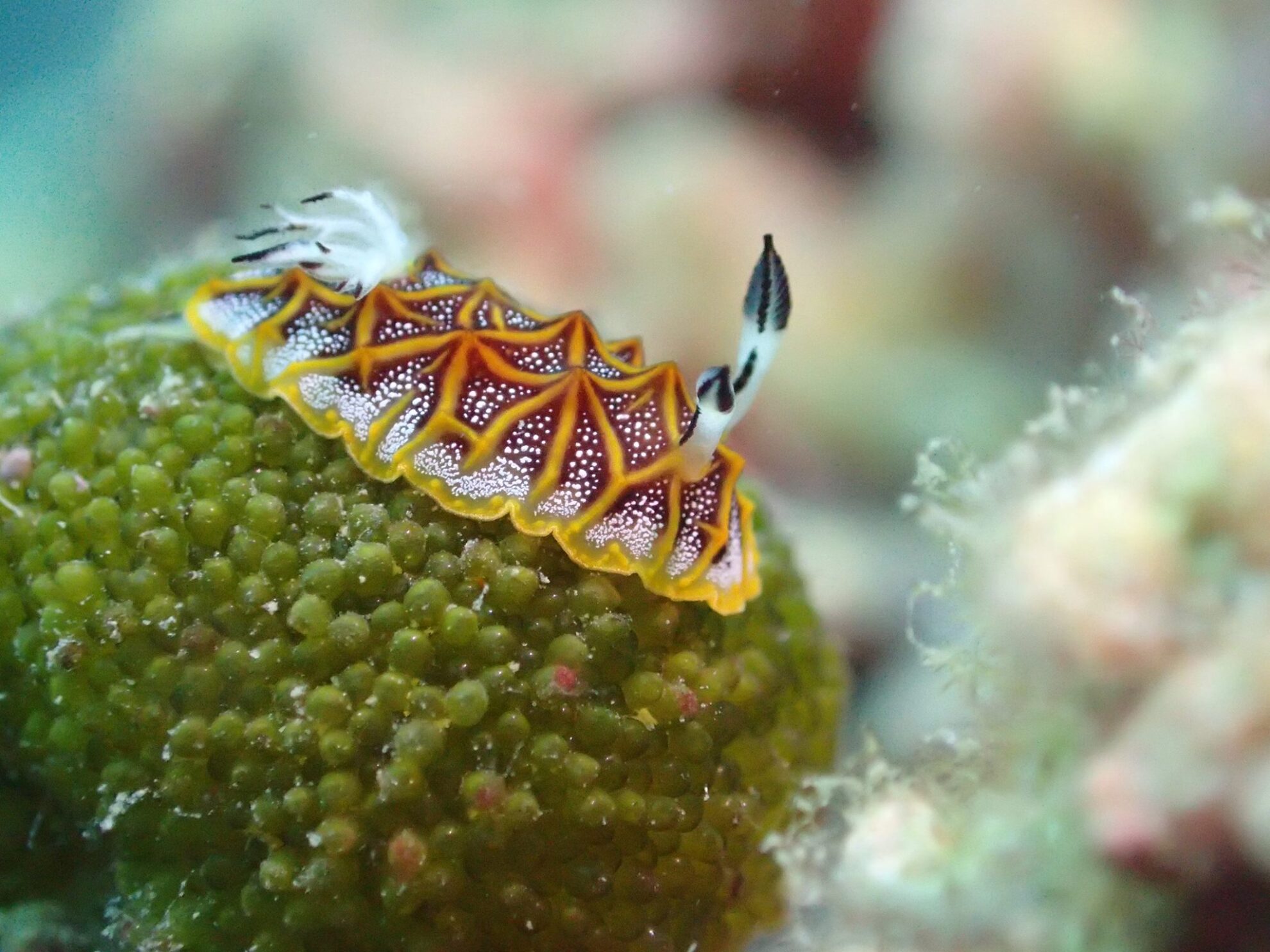 - 它們頭部通常有兩條類似「觸角」的構造,稱為**「鼻狀突」(Rhinophores)**,主要用來感知水流和氣味,幫助尋找食物與伴侶。